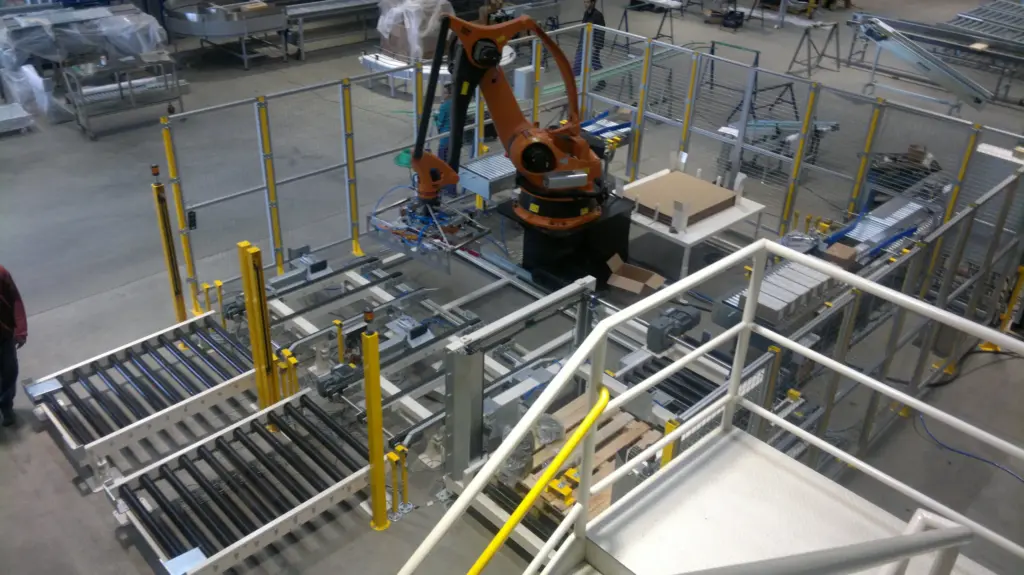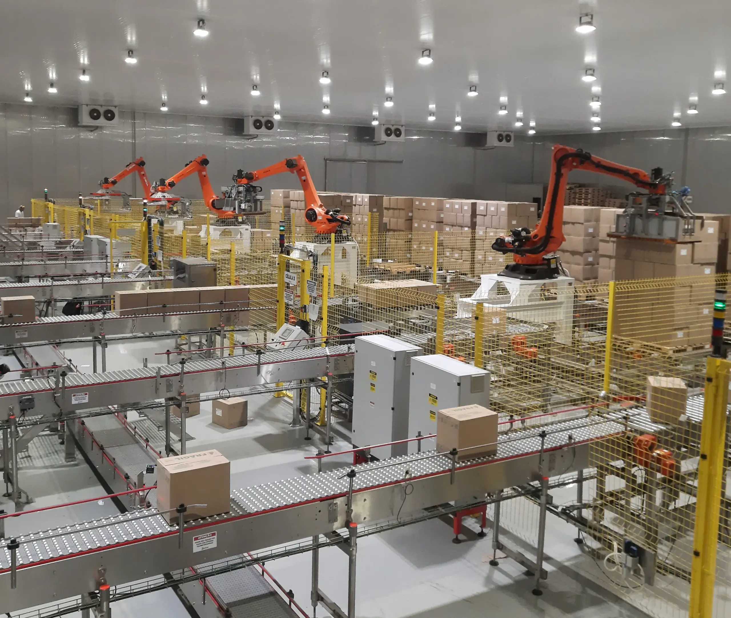 Células de paletização de caixas em linhas de produção, em ambiente de temperatura